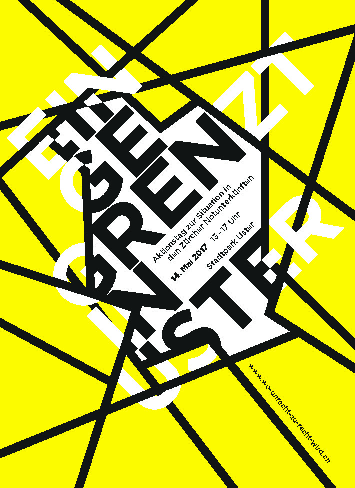 Seit letztem Sommer sind im Kanton Zürich an unsichtbaren Verwaltungsgrenzen Zäune und Gefängnismauern gewachsen. Die Regierung des Kantons hat beschlossen, Menschen unter massiver Strafandrohung auf Gemeinden und Bezirke einzugrenzen. Urdorf, Uster, Kemptthal, Adliswil, Kloten und Hinteregg – das sind die neuen Namen einer Politik, die Lager schafft, in denen Menschen eingesperrt und ihrer Grundrechte beraubt werden. Zu diesen Grenzen gesellt sich eine Mauer des Schweigens, die eine solche Praxis der Entrechtung und Ausgrenzung stillschweigend toleriert. Im Workshop werden wir Ideen für einen Aktionstag am 13. Mai sammeln und ausarbeiten, der die skandalöse Praxis dieses Grenzund Entrechtungsregimes im Kanton Zürich thematisiert und kritisiert. Wir wollen uns an die Grenzen begeben, sie sichtbar machen, sie übertreten und unserem Widerstand Ausdruck verleihen. Die Mauern des Schweigens müssen fallen.